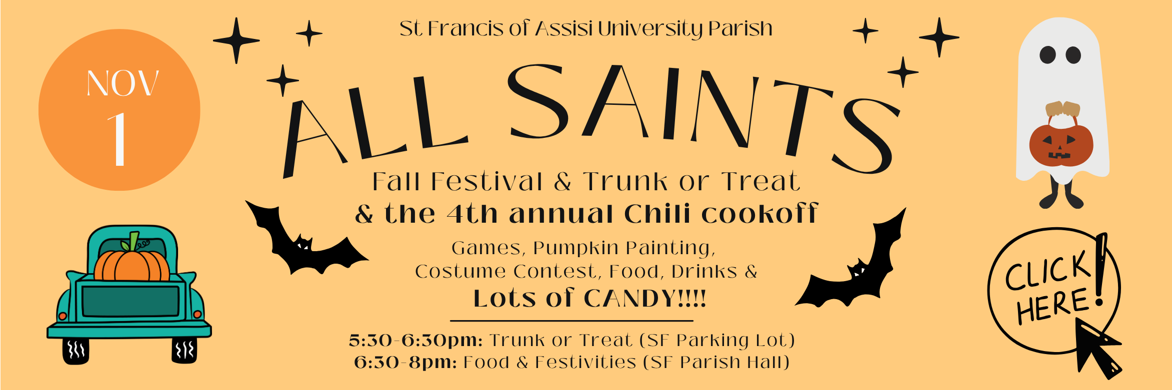 We are called to become Saints–to be perfected in charity and to grow in holiness. Jesus Christ makes this daring path possible. Following Him, we seek to become channels of God’s love to others. St. Francis of Assisi University Parish builds a faith community upon the foundation of the Sacraments. We Pray. We Worship. We Serve. Drawing from the rich wisdom, beauty, and tradition of Catholicism, we invite the Word of God to transform our lives, our relationships, and our communities.