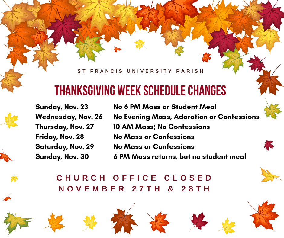 St. Francis of Assisi University Parish believes that we find our true fulfillment only in God. We invite all to join us in our journey toward our heavenly home.
